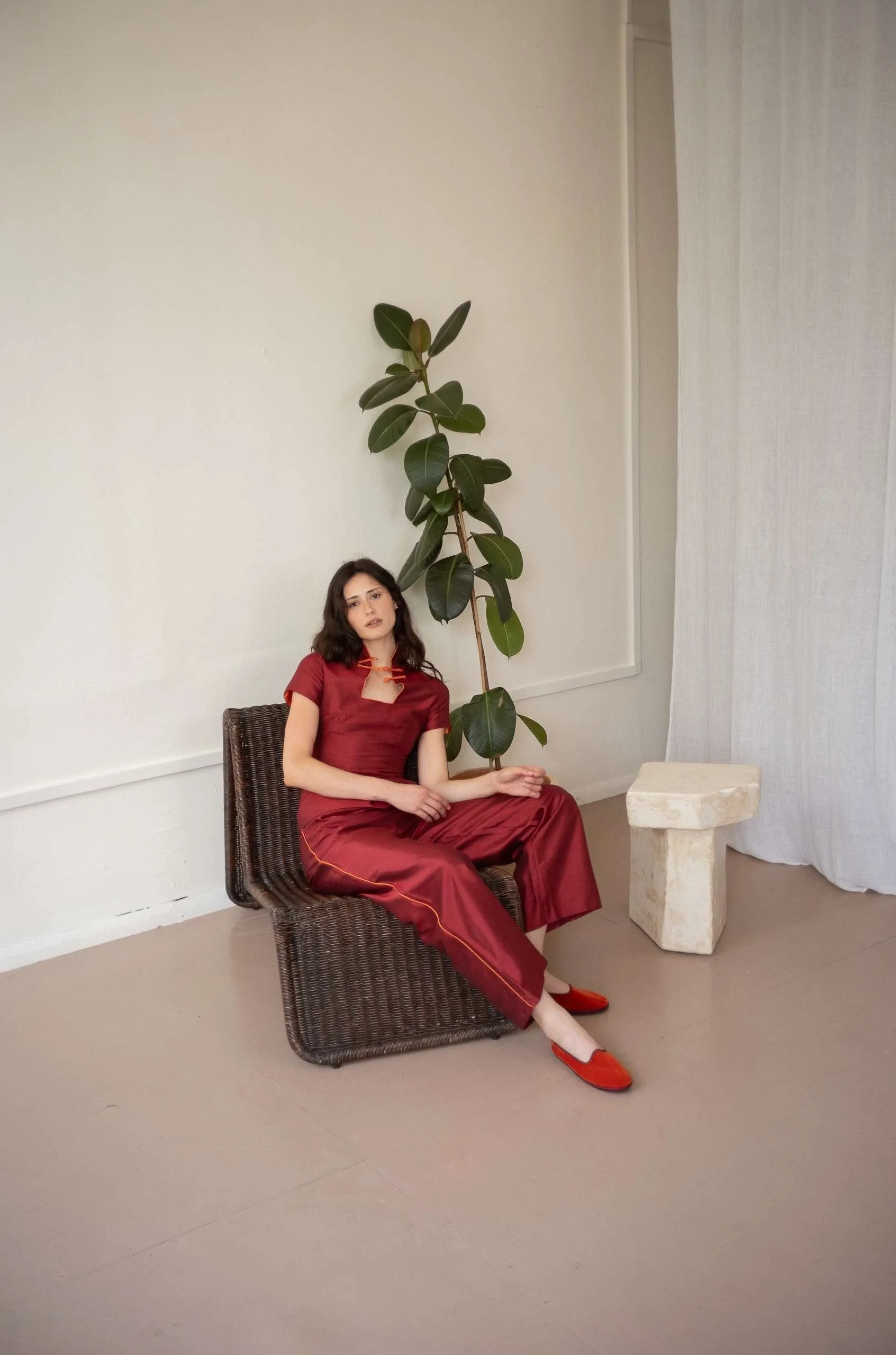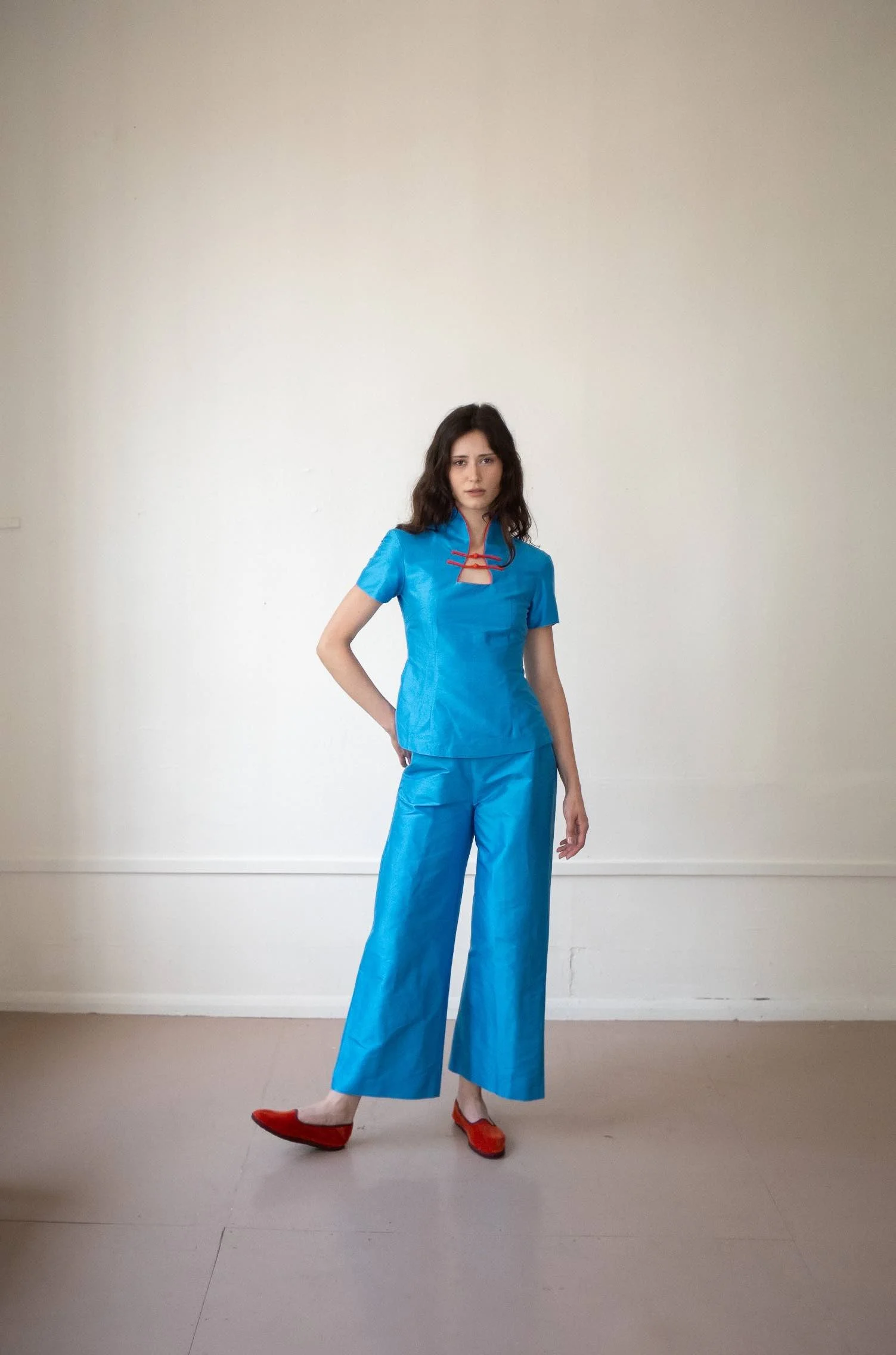 KUIJIA, meaning "armour" in Mandarin, represents the core of our brand. KUIJIA designs their garments to be one’s armour, helping to navigate the world with strength, confidence, and style. Inspired by the cultural blend of the founder's hometown, Hong Kong, KUIJIA was born out of a deep love and respect for heritage and tradition. The brand values strong working relationships with manufacturers, believing that respect across cultural borders fosters collaboration and understanding. Each KUIJIA garment is handcrafted in a small, female-run workshop in Guangdong Province, where skilled artisans meticulously hand-knot and dye each button, preserving centuries-old traditions. They embrace the slow fashion movement, focusing on quality over quantity, and produce limited, carefully curated collections throughout the year. Every piece is a tribute to the elegance and grace of Chinese dress, reimagined for the modern world.